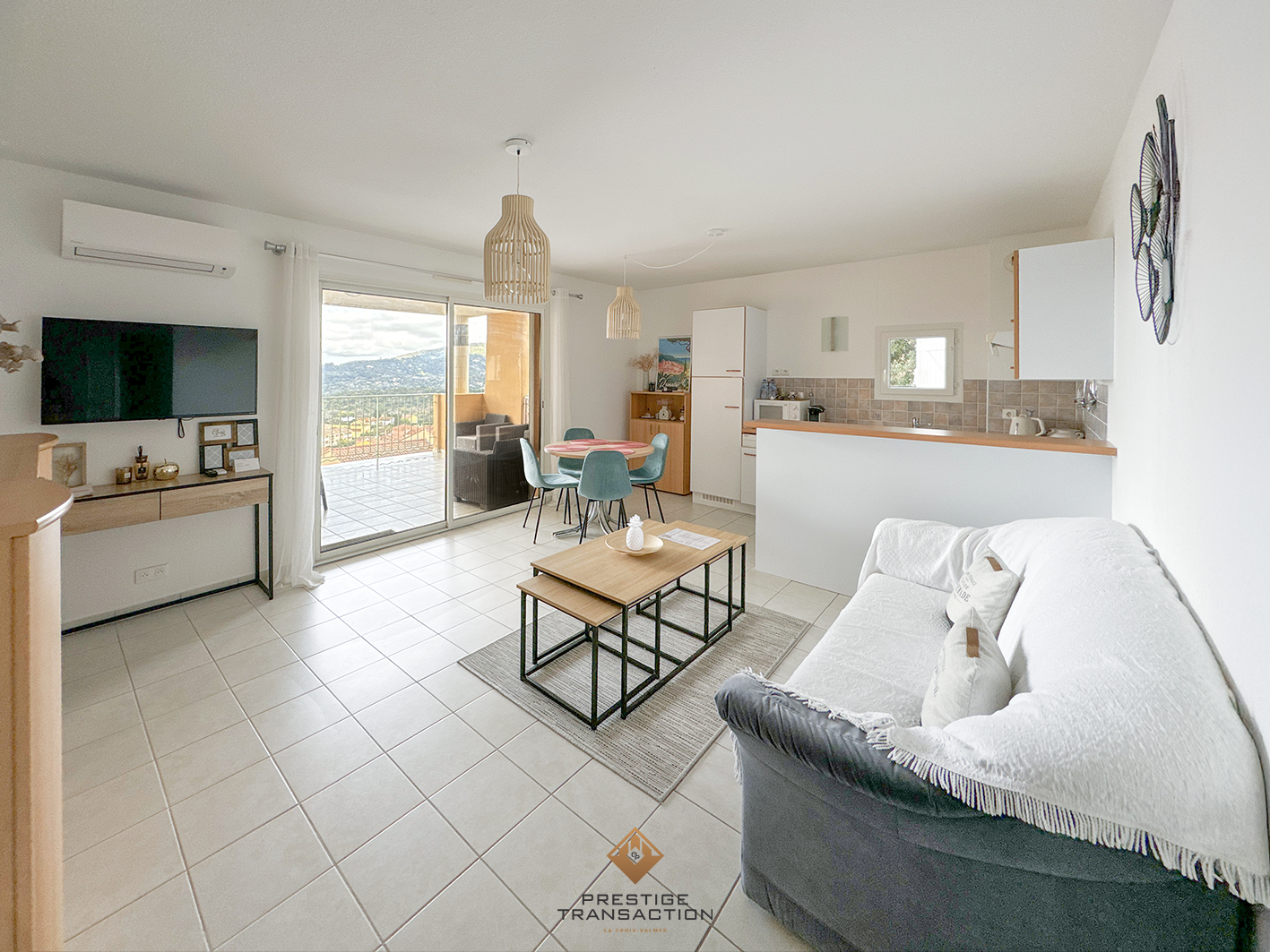 SOUS COMPROMIS DE VENTE ! L’équipe Prestige Transaction est ravie de vous présenter ce magnifique appartement T2 d’environ 43 m2, situé au premier étage d’une résidence sécurisée. Profitez d’une grande terrasse de 22 m2, offrant une vue imprenable sur la mer et les collines, idéale pour des moments de détente en plein air.