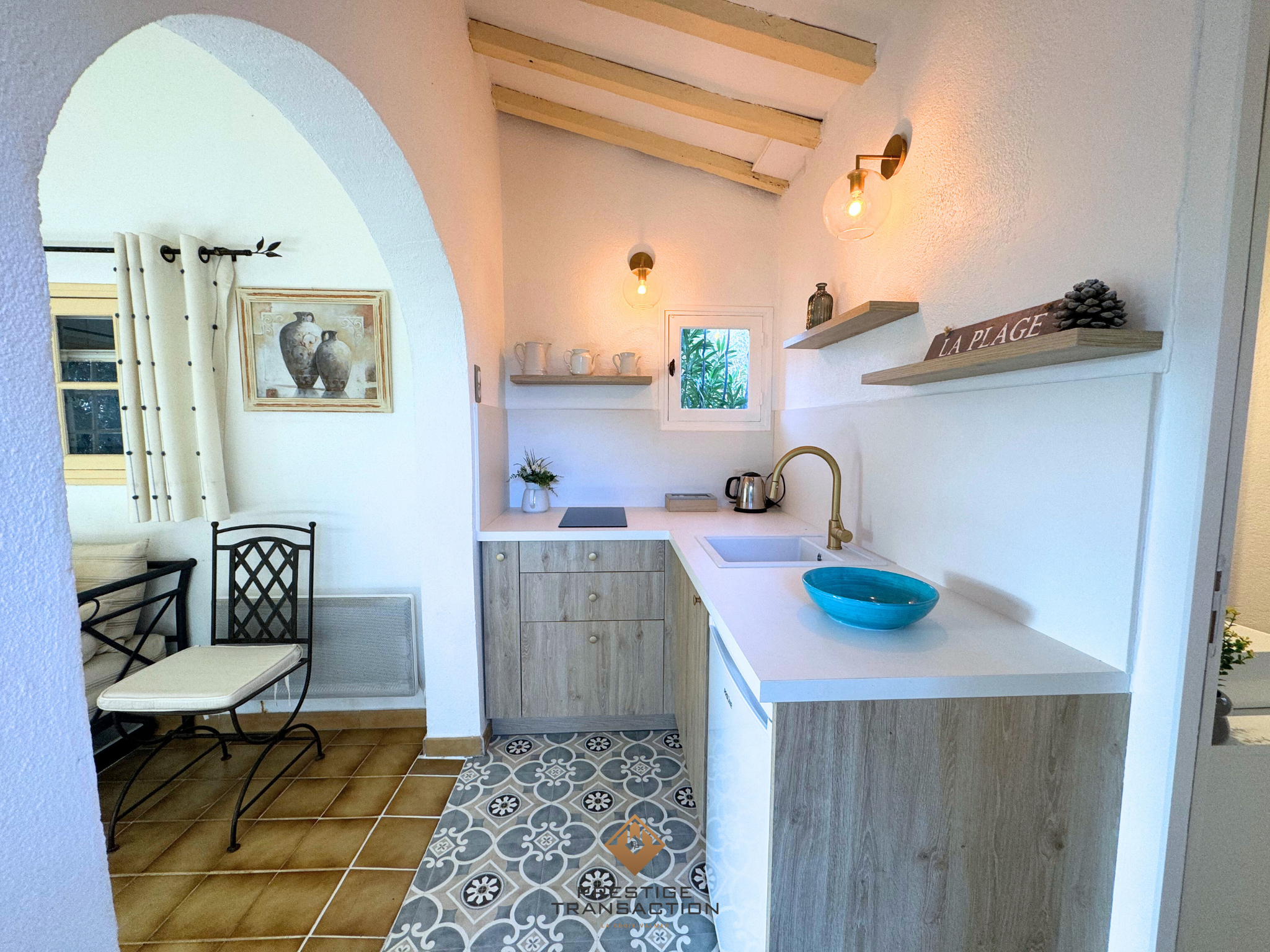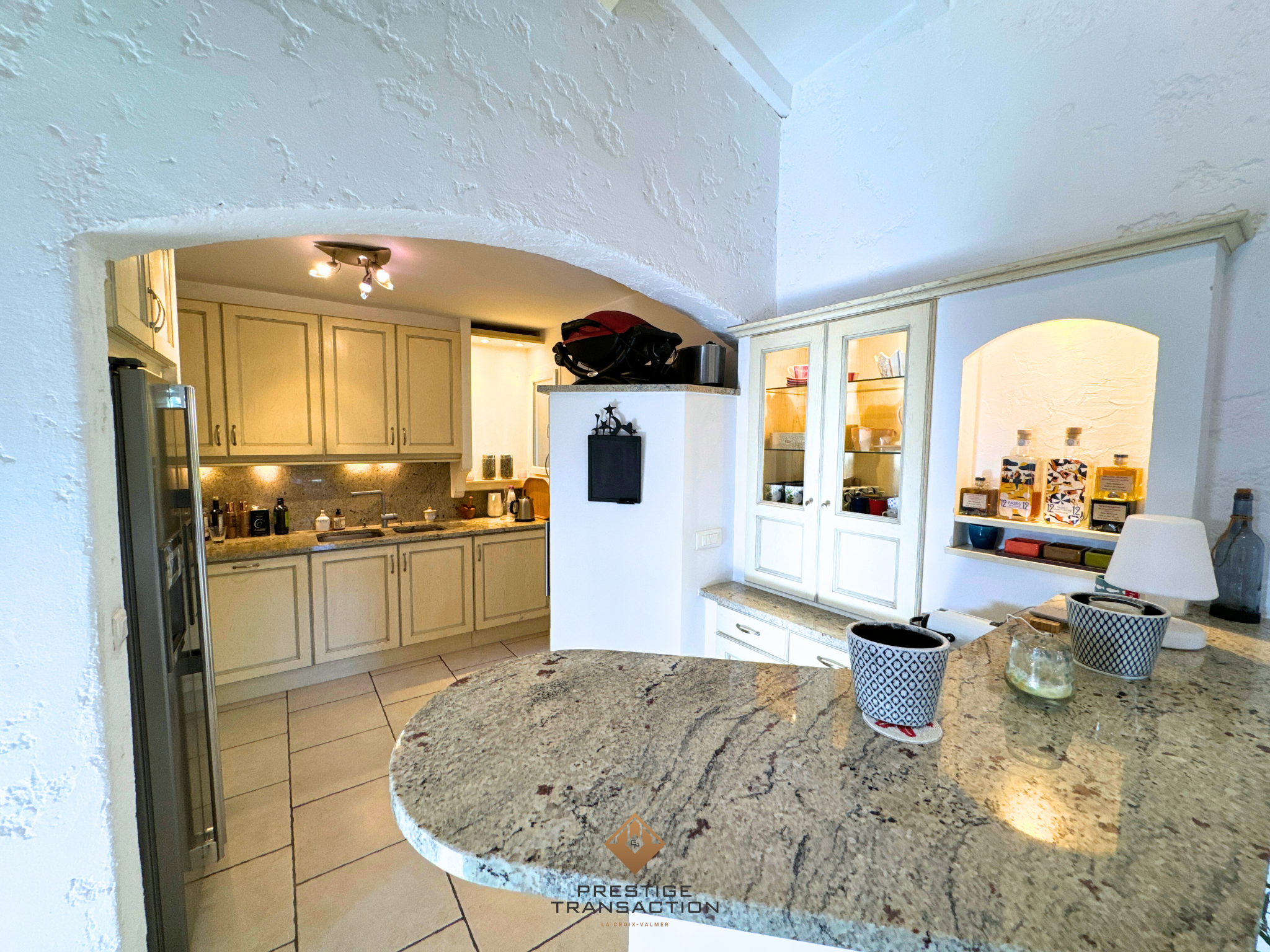 Une cuisine ouverte, conviviale, également prolongée par une terrasse.