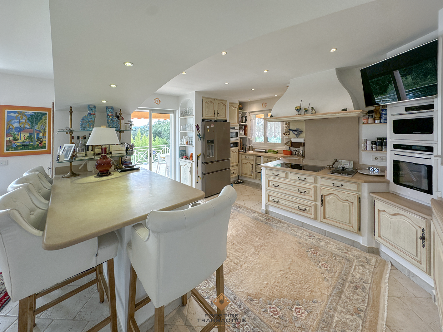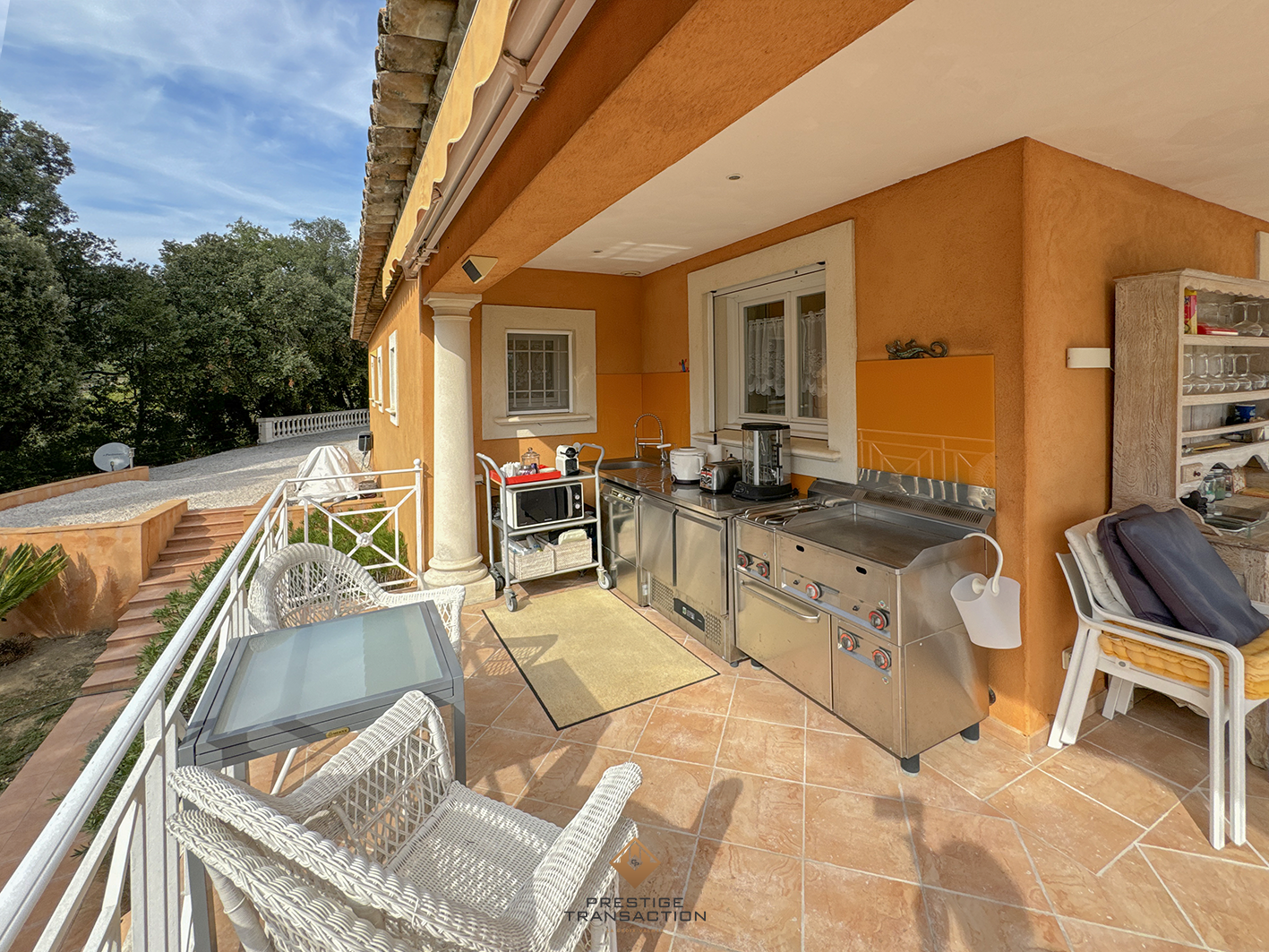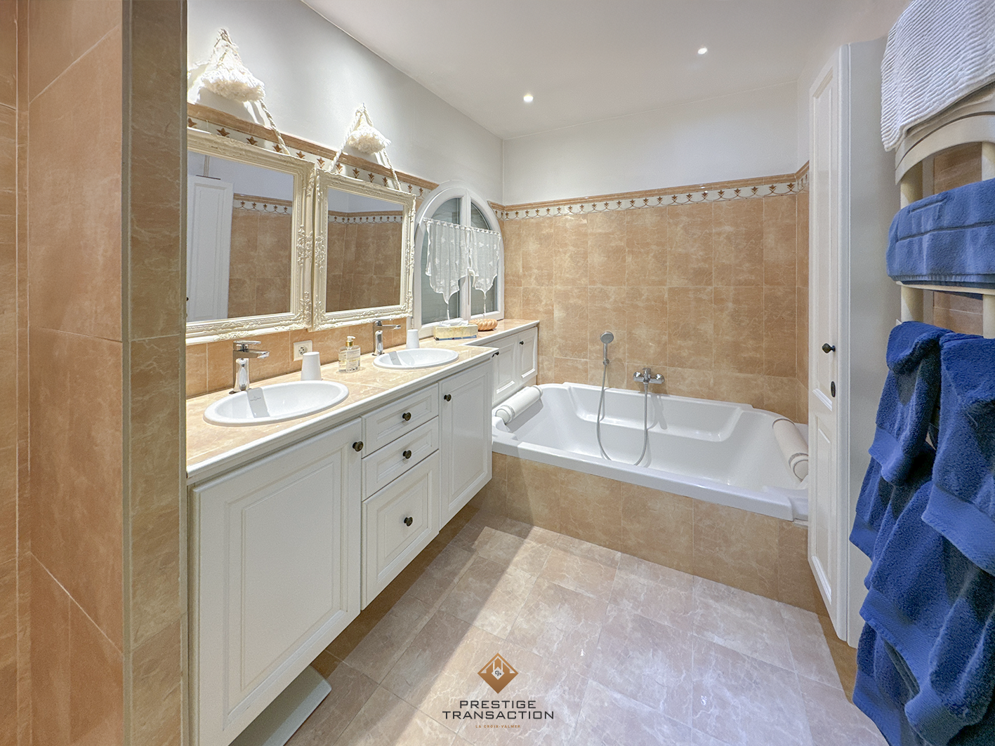 L’espace extérieur, aménagé avec soin, comprend une cuisine d’été entièrement équipée de manière professionnelle. Le vaste terrain arboré accueille une grande piscine au sel, offrant un cadre idéal pour se détendre. La villa dispose également de nombreuses places de stationnement intérieur, de la climatisation réversible, du double vitrage dans toutes les pièces, de stores électriques, ainsi que de nombreux espaces de rangement. En outre, elle bénéficie d’une cave à vin naturelle.