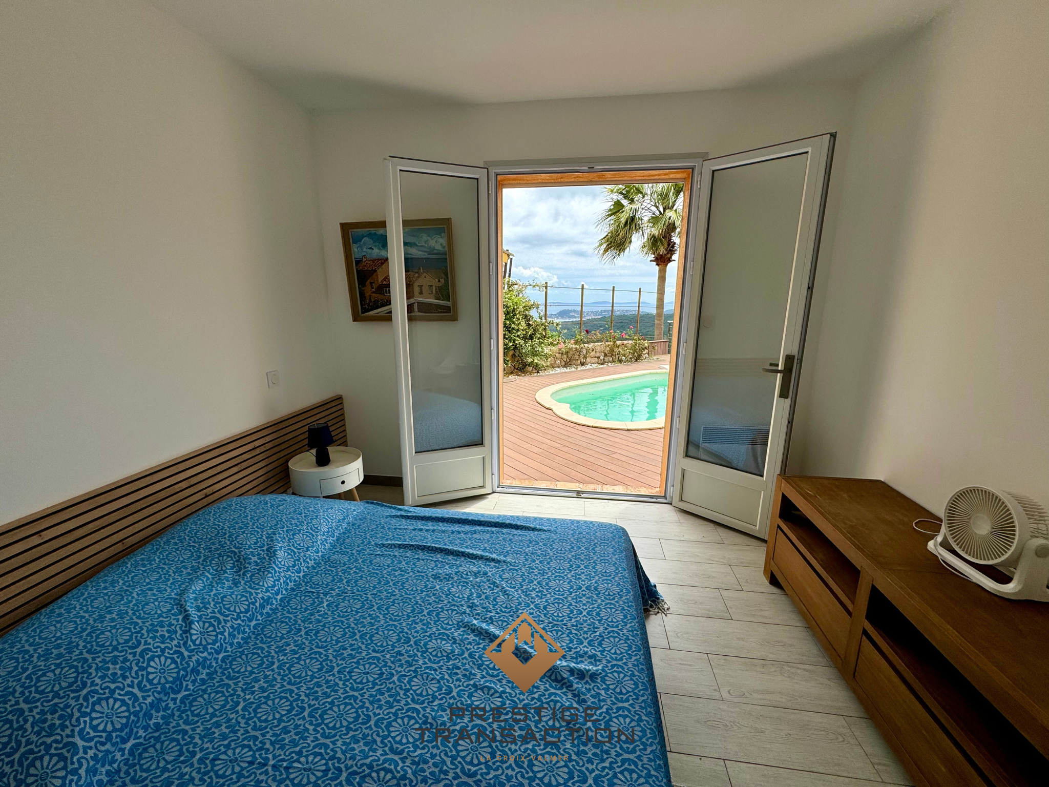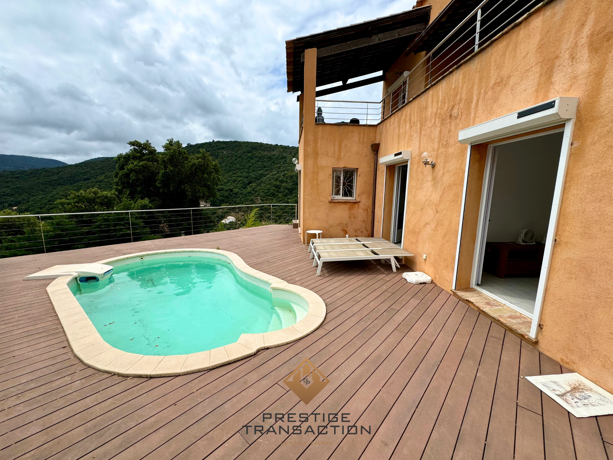 L’agence Prestige Transaction vous présente cette magnifique villa de 110 m2 avec piscine. Celle-ci est située dans un quartier calme sur une parcelle de 570 m2 dans la charmante commune de La Croix-Valmer. Cette propriété de deux niveaux offre un cadre de vie exceptionnel alliant confort et sérénité. On découvre la maison avec le salon ouvert sur l’extérieur, donnant sur une magnifique terrasse surplombant la vue, ainsi qu’une cuisine séparée entièrement équipée et aménagée dotée aussi d’un accès donnant sur la terrasse. L’espace nuit de la villa est composé de 4 chambres, toute avec accès terrasse/piscine et 2 salles de bain situées à l’étage inférieur. La villa comprend aussi un espace buanderie et un cellier. Cette maison est un véritable havre de paix offrant un cadre de vie exceptionnel à ses futurs propriétaires, cette propriété saura répondre à toutes vos attentes : – Grande terrasse exposée Sud-Est ensoleillée, idéale pour des moments de détente et de convivialité – Piscine sécurisée, parfaite pour les chaudes journées d’été – Plusieurs places de stationnement privées – Climatisation dans le séjour – Poêle à bois – Système de sécurité