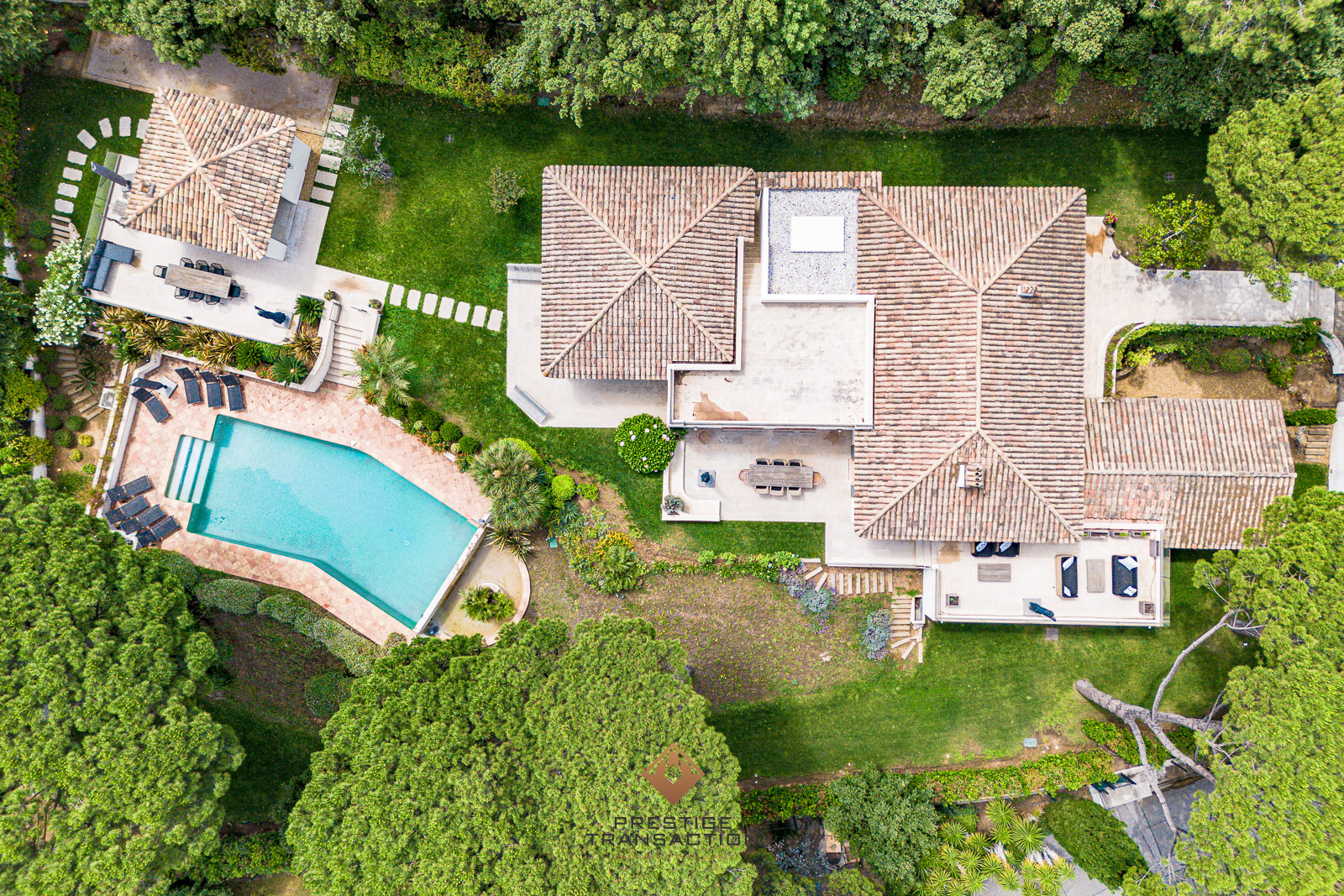 Pour compléter ce bien d’exception, un appartement totalement indépendant propose un séjour moderne avec cuisine ouverte ainsi que deux chambres, avec chacune leur salle de bain. L’espace extérieur est aménagé avec soin, incluant un pool house avec cuisine et salle d’eau. Le vaste terrain arboré dispose d’une grande piscine chauffée.